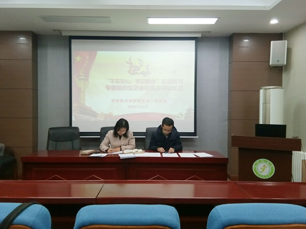 根据学校党委关于“不忘初心、牢记使命”主题教育统一部署,2019年12月6日,医学技术学院学生第一党支部、第二党支部分别在学院报告厅和会议室召开了“不忘初心、牢记使命”主题教育专题组织生活会,学院党总支副书记韩文霞出席了会议。12月9日,学生第三党支部在学院会议室召开了专题组织生活会,学院党总支书记耿潇潇出席了会议。各支部全体学生党员参加了本次会议,会议分别由各支部书记主持。