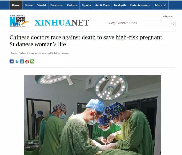 就这样,深夜,在阿布欧舍医院手术室的无影灯下,两地医疗队的中国医生沉着冷静、密切配合、联手救治,经过6个多小时的奋力抢救,最终成功将孕妇从“死神”手中夺了回来。