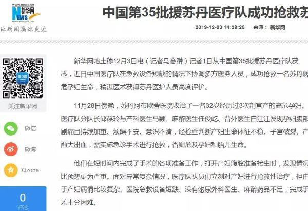 他说,能参与本次多学科联合、多医疗点合作将苏丹产妇从鬼门关里拉回来,为中苏人民友好做出贡献,自己也觉得非常荣幸。(第一附属医院文/图 宋益挺)