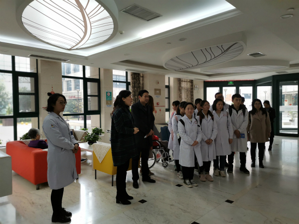 我校师生在西安工会医院相关工作人员的带领下,实地参观了该院的门诊医技楼、康复治疗、安宁疗护/疗休养、老年护理院、温泉水疗中心等区域,通过聆听各区域负责人的详细介绍,师生们全面详实了解了当下西安工会医院在康复治疗、疗养结合建设等方面的发展状况和取得的骄人成绩。