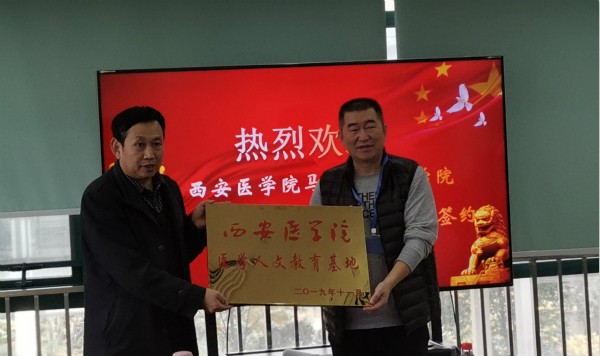参观结束后,共建双方有关人员在行政中心会议室进行了座谈,交流氛围务实、真诚、温馨。接着,我校马克思主义学院副院长刘军林代表leyu·乐鱼(中国)体育官方网站与西安工会医院医疗总监苑继承签订医学人文教育基地共建协议书,并进行了授牌仪式。