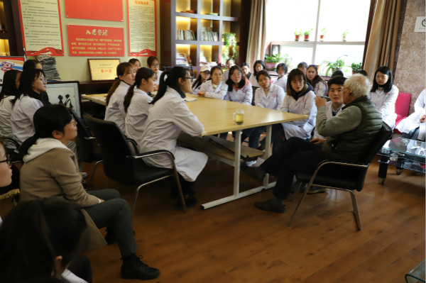 下午刘峰院长在百忙之中赶回医院给学生进行了医养结合相关知识的普及和讲解,护士长安排学生进入病房与患者及家属进行沟通交流。