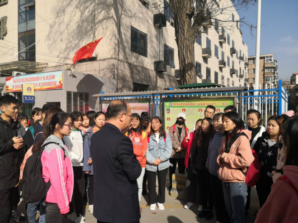 刘院长在医院门口与学生进行交流