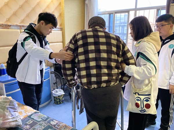 到达养老院后,参与活动的同学们分成三组,前往不同的楼层帮助工作人员打扫卫生、整理老人床铺、陪老人聊天。期间,师生们也与护理人员谈话了解老人的日常生活、关心老人的身体健康状况等。看到热情的老师和同学,老人们脸上都洋溢着幸福的笑容。志愿服务过程中,同学们深刻感受到这些老人们缺的不是高档的物质资源,而是平凡的暖心陪伴,同时体会到关爱老人、特别是老人中弱势群体的重要性,今后会认真学习专业知识,敬老、爱老,努力为他们多提供温馨、舒心的志愿服务。