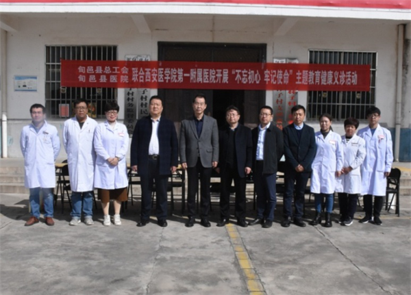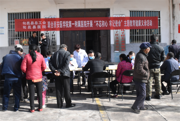 为中国人民谋幸福,为中华民族谋复兴,是中国共产党人的初心和使命。为深入开展“不忘初心、牢记使命”主题教育工作,用实际行动践行初心和使命,10月30日,我校第一附属医院院领导、党员医务工作者赴旬邑县开展医疗帮扶工作。