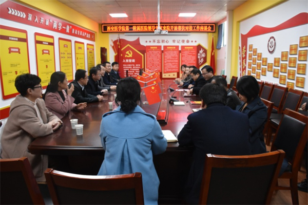下午,院领导班子与旬邑县医院院领导进行了座谈交流。会上,旬邑县医院院长胡波介绍了旬邑县医院的基本情况、科室的优劣势情况及需要一附院帮助的方面。