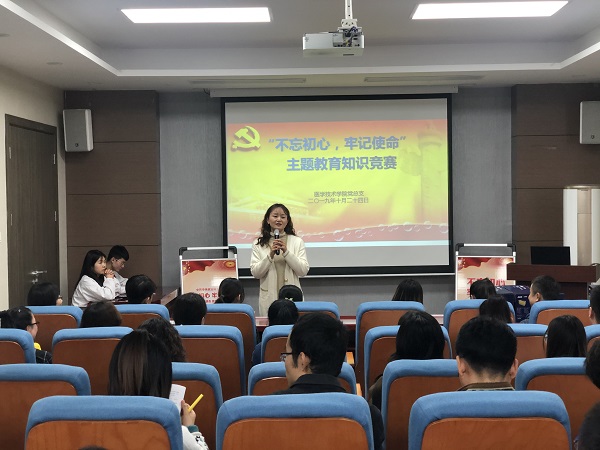 为深入推进“不忘初心、牢记使命”主题教育,检验学习成果,2019年10月24日中午,医学技术学院党总支在学院报告厅举办了“不忘初心、牢记使命”主题教育知识竞赛,来自教工党支部、学生党支部的4支代表队16位同志进行了一场“智慧”对决。