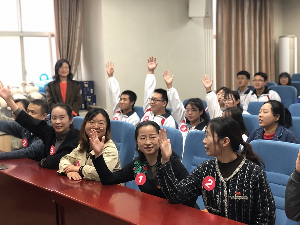党员们现场举手示意进行抢答