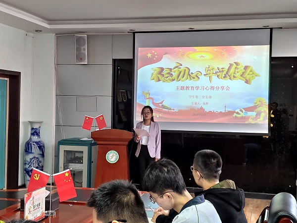 结合本次主题教育学习和个人岗位职责,学生第一党支部书记魏慧以“坚定理想信念、践行初心使命”为主题从牢记党的宗旨、不断加强党性修养、把“忠诚、干净、担当”的精神体现在工作上、把榜样扎根在我们的心里四个方面分享了“守初心、担使命”的学习体会和意义。学生第二党支部书记李周以“初心和使命是党员的行动指南”为主题从为什么坚守初心和如何谋复兴两方面讲述了作为一名共产党员应该如何贯彻习近平总书记思想,为实现中国梦而奋斗。学生第三党支部书记张妍以“立足本职、争创一流,多做贡献”为主题,从做好一名基层党员干部的角度分享了结合主题教育,认真查找自己的不足,发现工作中的进步空间,更好地为学生、为老师、为人民服务的心得。