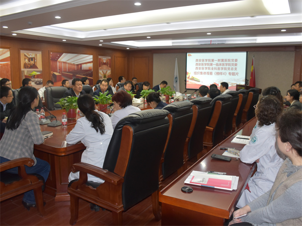 10月22日上午,第一附属医院组织领导班子成员和行政职能第一、第二党支部全体党员在行政楼三楼会议室集中观看了由中共中央组织部、中央广播电视总台联合录制的反映优秀共产党员和先进基层党组织典型事迹的专题节目《榜样4》。观看结束后举办了座谈会,在场的每位党员都进行了交流发言。