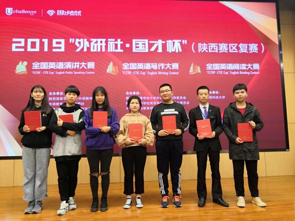 2019年10月19日“外研社杯”全国英语演讲大赛、写作大赛、阅读大赛陕西赛区复赛和决赛在陕西科技大学举办,我校7名学生代表参赛,在外国语学院教师前期的悉心指导下,喜获佳绩。