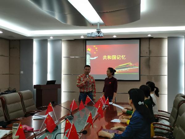 首先,全体党员在支部书记李萍的带领下共同回顾了新中国成立70年来的辉煌成就,深切缅怀了老一辈无产阶级革命先烈为祖国做出的巨大贡献,对中华人民共和国成立70年来特别是改革开放以来的光辉历程、伟大成就和宝贵经验也有了更加深刻的体会。她讲到,这次主题党日活动的开展,既是深入学习贯彻习近平新时代中国特色社会主义思想,大力弘扬爱国主义精神,也是支部巩固推进“不忘初心、牢记使命”主题教育的具体行动,我们要提高基层党支部的战斗堡垒作用,增强全体党员的集体荣誉感和使命责任感。