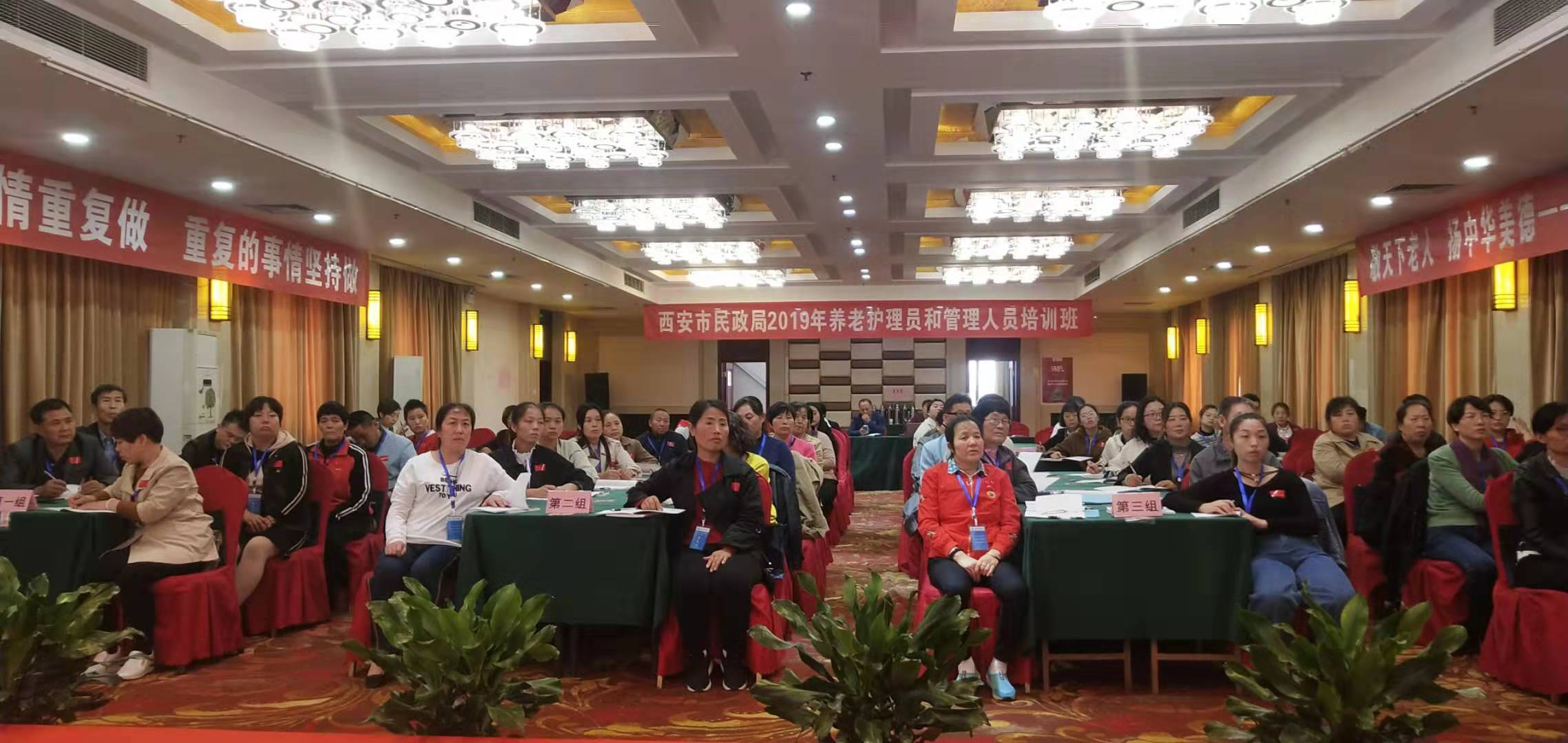 为进一步加强我市养老护理员人才队伍建设,切实提升养老服务人员服务意识和服务水平。2019年10月11日,由西安市民政局主办、leyu·乐鱼(中国)体育官方网站承办的西安市2019年初级养老护理员培训班开班仪式在西安市新城区解放路解放饭店举行,来自西安市部分区(县)从事养老服务工作的护理人员共计100人参加了开班仪式。西安市民政局养老服务和慈善事业促进处处长刘绪勤、西安市民政局养老服务和慈善事业促进处主任科员任明、西安市新城区民政局局长何永宁、西安市新城区民政局副局长张卓、西安市社会福利与养老服务协会会长狄红军、leyu·乐鱼(中国)体育官方网站继续教育学院副院长焦东平、leyu·乐鱼(中国)体育官方网站继续教育学院学生科科长张瑾、leyu·乐鱼(中国)体育官方网站继续教育学院学生科冯金龙老师出席了开班仪式。