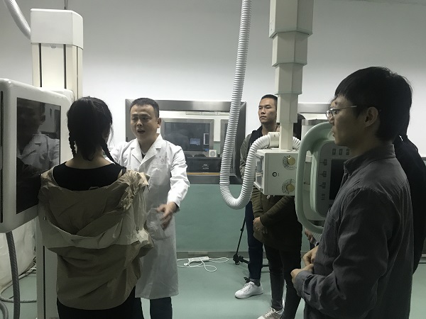 老师为学生拍颈椎侧位片