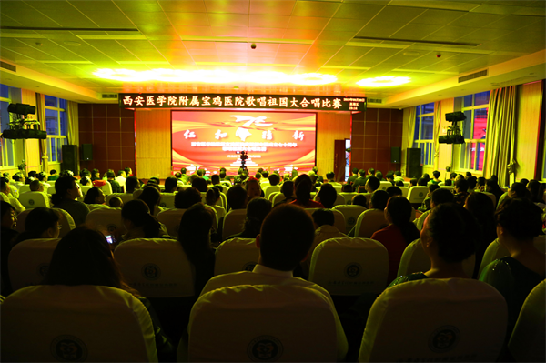 七十年强国征程波澜壮阔,七十年沧桑巨变举世瞩目。为庆祝新中国成立70周年,深入贯彻落实习近平新时代中国特色社会主义思想,扎实推进“不忘初心、牢记使命”主题教育开展,为祖国母亲庆生,为盛世中华喝彩,为医院高质量发展加油鼓劲。9月20日晚,附属宝鸡医院举办以“与共和国同成长、与新时代齐奋进”为主题的“歌唱祖国”职工大合唱比赛,全院共有17支代表队、500余名职工参加了比赛。