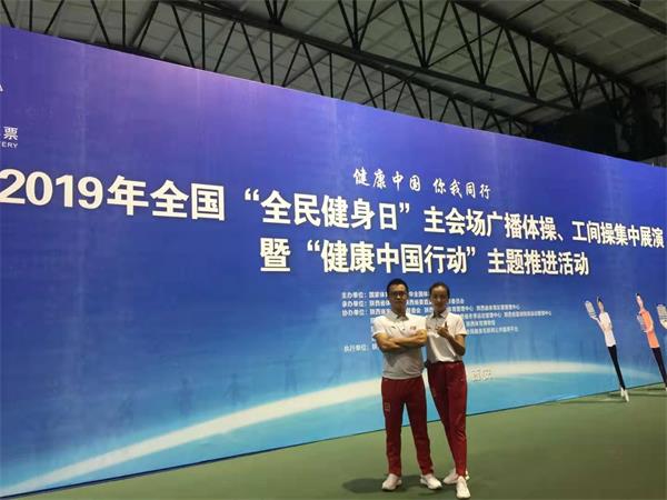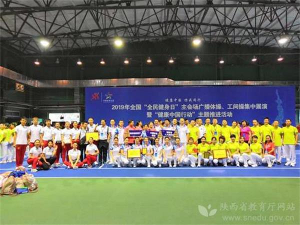 2019年8月2日至4日,由国家体育总局、中华全国体育总会主办的 2019年全国“全民健身日”主会场广播体操、工间操集中展演暨“健康中国行动”主题推进活动在西安举行。陕西省委教育工委,省教育厅代表省直机关工委参加了本次活动,队员由部分高校和陕西石油普通教育管理移交中心教职工组成,陕西省委教育工委副书记陈乃霞担任领队。我校体育部闫勇江、李珈骐两名老师在暑假期间经过三周的备赛取得一等奖和最佳团队奖。