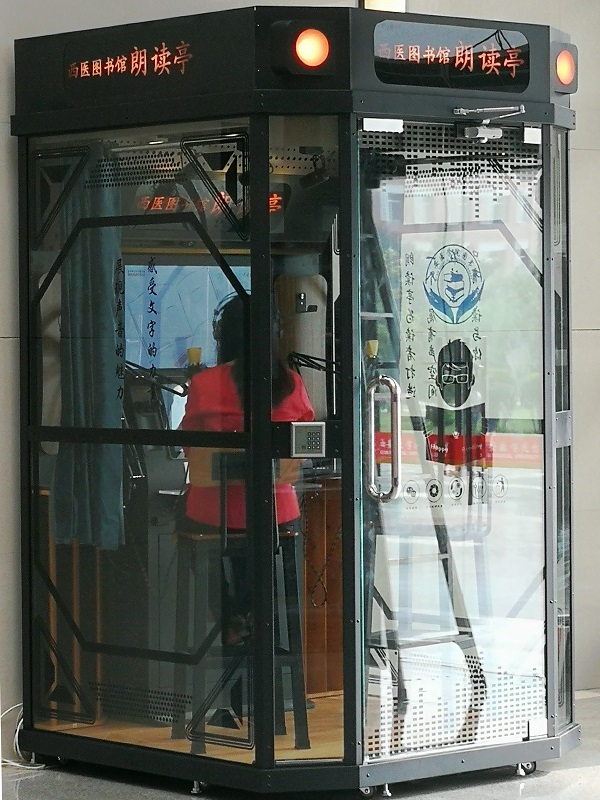 图书馆一楼大厅的醒目位置引进了朗读亭,从此以后,进到图书馆不仅可以安静地看书,还可以声情并茂地朗读,在朗读声中慢慢地感受文字的力量、展现声音的魅力。