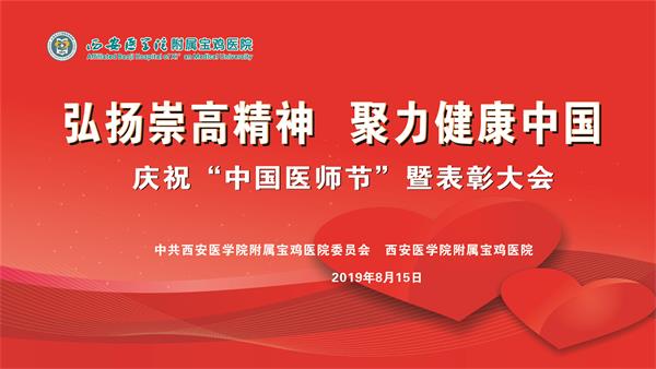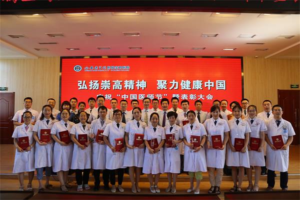 为激励全院医务工作者大力弘扬"敬佑生命、救死扶伤、甘于奉献、大爱无疆"的崇高精神,进一步团结凝聚全体医务工作者力量,加强医师队伍建设,营造尊医重卫良好氛围,为决胜全面建成小康社会、实现中华民族伟大复兴中国梦作出新贡献。附属宝鸡医院于8月15日下午在4号楼学术报告厅举办了“庆祝中国医师节暨表彰大会”,院领导班子成员、全体中干、护士长、临床医师、医技人员及部分护士代表共两百余人参会,大会由党委书记王光明同志主持。