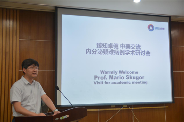为搭建中美双方医学交流平台,共同探讨内分泌疑难疾病的国际前沿技术,2019年7月6日,第二附属医院肾脏内分泌科在医院第一会议室举办“中美内分泌疑难病例学术讨论会”,特邀来自美国克利夫兰医学中心糖尿病代谢科和内分泌代谢研究所的Mario Skugor教授进行学术讨论,第二附属医院副院长苏玉强、肾脏内分泌科主任高海燕、相关部门工作人员以及科室全体医护人员共计30余人参加此次会议。