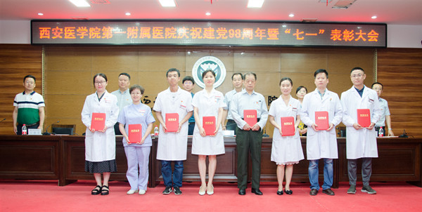 为了纪念中国共产党成立98周年,进一步学习贯彻习近平新时代中国特色社会主义思想和党的十九大精神,不断推进“一流人文品牌医院”建设。6月27日下午,第一附属医院在学术报告厅举行庆祝中国共产党成立98周年暨“七一”表彰大会,院领导、科主任、护士长、全体党员及入党积极分子参加了会议。会议由第一附属医院党委副书记、院长李亚军主持。