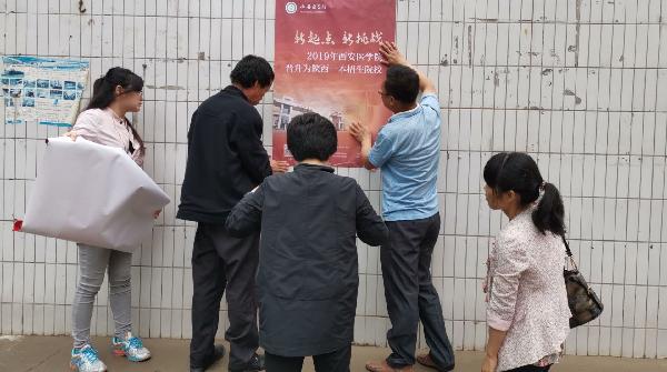 2019年6月20至25日,基础医学部选派专业骨干教师前往陕西省内20余所高中进行招生宣传工作。基础医学部领导对2019年招生宣传工作极为重视,精心部署、周密安排、大力动员,成立了基础医学部招生宣传工作领导组。为落实招生宣传工作,加强其实效性,基础医学部建立了招生宣传群,动员生源地为宣传点的学生也积极参与到招生宣传工作中。以“致母校的一封感谢信”为内容,制作感谢信海报20余张。同时,搜集各学院的学生获奖、考研喜报,就业情况等宣传材料,加大宣传力度,为实地进行招生宣传做好前期的准备工作。基础医学部党政办提前做好出行的线路攻略,与各中学取得联系,方便各工作组的宣传工作。