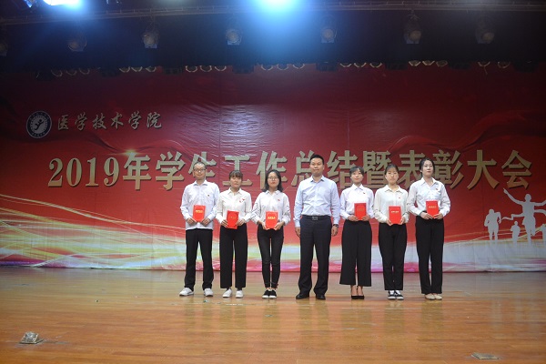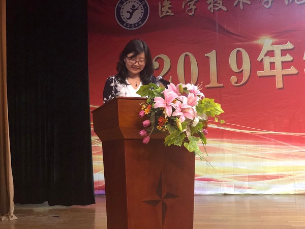 6月11日下午,医学技术学院在学校学术报告厅召开2019年学生工作总结暨表彰大会,总结本学年学生工作并表彰本学年在志愿、科研、文艺、团支部等各方面的先进典型。参加此次大会的有医学技术学院党总支书记耿潇潇、院长孙静、副院长王莉、党总支副书记韩文霞、学生科科长魏慧、教学科负责人郭璞、团总支负责人王心、各教研室老师、各班辅导员及学生代表。大会由党总支副书记韩文霞主持。