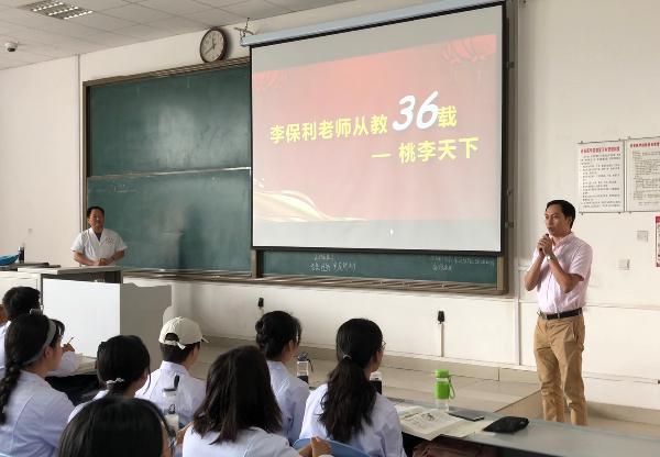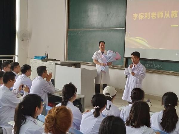 为营造尊师重教的良好氛围,传承优良师德师风,6月12日,基础医学部为从教36年的李保利副教授举行荣休仪式。仪式特意选在李老师退休前最后一节理论课后进行。基础医学部全体领导班子成员、教务处副处长张军峰、人体解剖学教研室所有教师及临床本科1843—1845班同学参加了此次仪式。