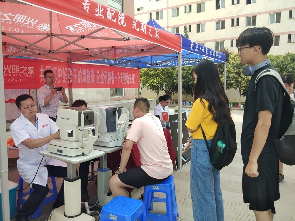 “光明之家”围绕2019年全国爱眼日主题“共同呵护好孩子的眼睛,让他们拥有一个光明的未来”,为学生免费提供视力检查、电脑验光、基础视功能检查、镜架调整和镜片眼睛清洗等服务,并为学生宣传护眼知识,让学生们清楚的了解到自己的眼部问题,提高学生爱眼护眼意识。