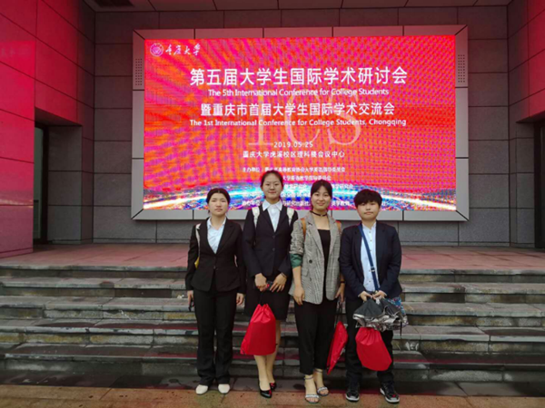 2019年5月24日至26日,我校临床医学院3名一年级本科生史紫怡、李雨蓓和白娜和外国语学院英语专业(医学方向)英本1610班刘凡共同参加了2019年全国大学生国际学术研讨会。此次重庆之行由我校刘碧波和朱晓娟两名老师领队。其中史紫怡、李雨蓓和白娜3名同学分别作大会全英文分享展示,并获论文宣读证书。同学们落落大方,展现了我校医学生的良好精神风貌。