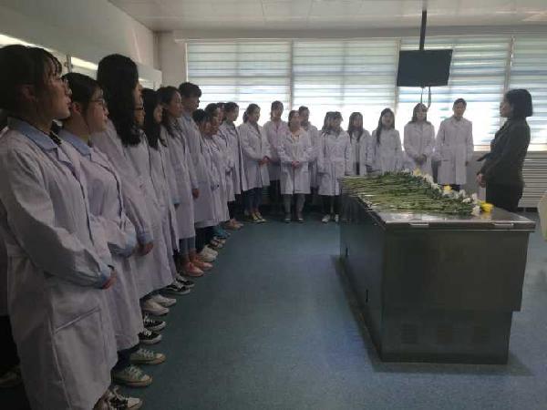 简单朴素的仪式过后,马克思主义学院医学伦理学教研室常乃升老师对在场学生进行了“感悟生命的意义”现场教学。她从生命意义的角度出发,讴歌了遗体捐献者奉献医学事业的大无畏精神,同学生一起展开关于爱与担当的思考。此情此景让在场学生深受感动和启发,纷纷落泪。