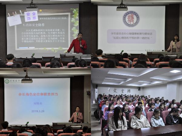随后由护理学院辅导员常大林、魏咪、刘恒美分别从宿舍安全、学生心理健康、舍长角色和担当等方面进行讲解。常大林用大家喜闻乐见的方式突出安全的重要性,绷紧宿舍安全这根弦,让安全教育知识深入人心,增强学生安全方面的技能和本领,加强学生自我保护的意识和能力。魏咪围绕着“学生宿舍舍长心理健康教育”为主题展开培训,分别从发现问题、评估风险、及时上报等方面展开,从而为学生拉起心理危机干预的第一道防线。刘恒美讲述了高校宿舍管理中存在的问题、舍长的角色、舍长的地位和作用以及如何夯实高校舍长队伍建设等,为完善学生终端管理保驾护航。