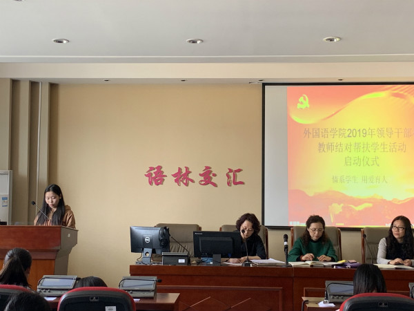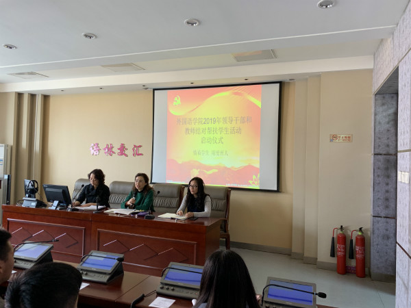 首先尚瑜副书记解读《外国语学院2019年领导干部和教师结对帮扶学生活动方案》,从活动开展的意义、帮扶内容、帮扶方式及工作要求等几个方面就学院帮扶工作做了周密部署和安排。并强调,共同富裕是社会主义的本质规定和奋斗目标,也是我们党的重要使命。所有教职工要高度重视,围绕激发学生成人成才志向、帮扶学生学习生活、关怀学生心智情感、启迪学生知恩感恩四项重点内容,扎实开展帮扶工作。