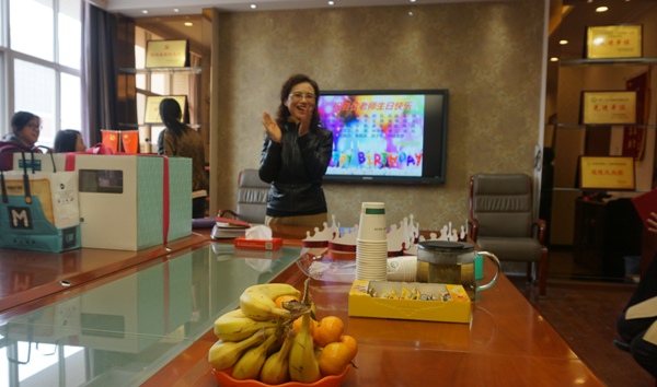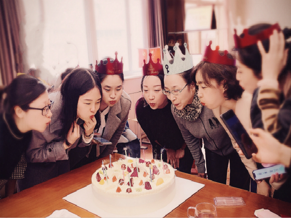 在生日会上首先外国语学院院长陈蓁向在座的“寿星们”表达了真挚的祝福,并与外国语学院党总支副书记尚瑜为每一位过生日的老师佩戴生日帽、发送生日贺卡。