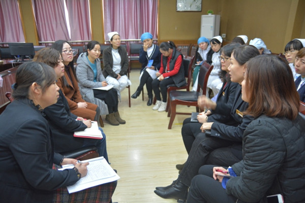 周晓丽主任和石莉红老师与指导老师们进行座谈。大家围绕学生毕业论文选题重复、实习轮转安排与课题进展安排的衔接、学生科研基础薄弱等问题展开了热烈讨论。二附院老师建议学院今年此项工作前移,提前调查学生兴趣方向,再由医院导师帮助学生制定具体论文题目的方式进行,有助于导师对学生毕业论文的全程监控和指导。两位老师表示,大家的建议对持续改进今年的此项工作有较好的借鉴作用。通过座谈,大家纷纷表示此次护理学院老师到院指导非常及时,利于后续工作的开展。