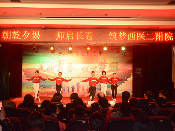 让我们吹着青春的号角,踩着梦想延伸的大道,迎着暖冬的晨曦。在紧张的学习中,为进一步丰富大学生课余生活,活跃学习氛围,给同学们一个真正展示自我风采和勇气的舞台,11月29日下午,由我校第二附属医院教学科主办的“美丽青春绽放梦想”学生大型文艺汇演在二附院教研楼学术报告厅隆重举行。leyu·乐鱼(中国)体育官方网站临床医学院院长王惠民受邀演现场观看,二附院副院长周胜、副院长赵海康、副院长苏玉强与各科室老师及在院学生欢聚一堂,一同欣赏了这场美轮美奂的视听盛宴。