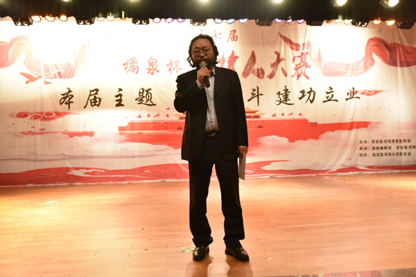 为积极营造弘扬爱国奋斗精神的浓厚氛围,激励广大师生努力做爱国奋斗精神的传承者,勉励在校学生争做担当民族复兴大任的时代新人,11月27日下午,我校在学术报告厅举行以“爱国奋斗 建功立业”为主题的第七届橘泉杯主持人大赛。本次大赛由党委宣传部主办,党委宣传部校报编辑部、校广播站承办,党委宣传部记者站,共青团leyu·乐鱼(中国)体育官方网站委员会学生社团联合会协办。党委宣传部部长马征,校工会副主席白万晓,医学技术学院党总支副书记耿潇潇,基础医学部副主任、基础与转化医学研究所所长苟兴春,基础医学部教授张润岐,校团委副书记李美玥,党委宣传部校报编辑部主任唐臻娜等出席本次大赛。本次大赛还特邀了陕西师范大学新闻与传播学院院长、博士生导师李震教授出席并作了点评。党委宣传部部长马征为大赛作了题为《奋斗所到处青春恰自来》的致辞,勉励同学们努力学习、不断进取,把自己的个人理想同祖国医学事业的发展需要紧密联系在一起,谱写出青春奋斗的华章!