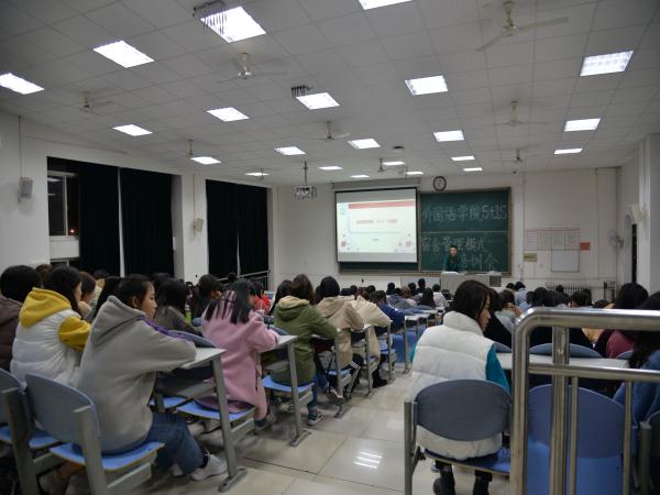 为全面学习宣传并贯彻落实leyu·乐鱼(中国)体育官方网站“5+1S”宿舍新型管理模式,推动文明宿舍建设,规范学生宿舍住宿管理,培养学生良好生活行为习惯,外国语学院于11月22日晚19:00在教学楼310教室组织召开了“5+1S”宿舍管理模式培训会。本次培训会特别邀请到全科医学院学生科科长周雪坤为外国语学院进行“5+1S”宿舍管理模式专题培训指导,外国语学院党总支副书记尚瑜,学生科科长周豪,外国语院学院全体辅导员、2018级新生及学生干部参加培训会。会议由外国语学院学生科长周豪主持。