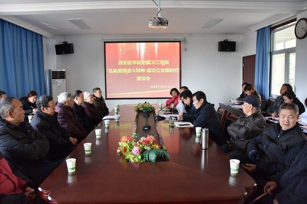 为全面贯彻习近平总书记关于人才工作、知识分子工作重要指示及对“西迁精神”的重要批示精神,根据中省、省委高教工委、校党委关于“弘扬爱国奋斗精神,建功立业新时代”的活动要求,按照医院的活动安排,11月21日,附属汉江医院在二楼会议室召开了“弘扬爱国奋斗精神,建功立业新时代”座谈会。会议由院党委书记刘睿主持,医院党委副书记、院长欧阳平,副院长杜建军,退休职工代表,各科室负责人及护士长参加会议。