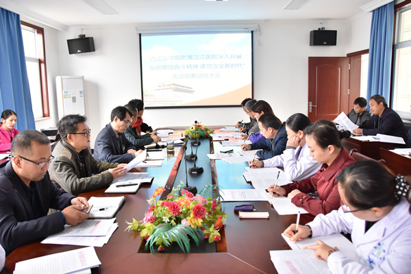 为深入贯彻学校关于开展“弘扬爱国奋斗精神、建功立业新时代”活动的文件和会议精神,10月19日下午,附属汉江医院在行政楼二楼会议室举行了深入开展“弘扬爱国奋斗精神、建功立业新时代”活动部署动员大会。院领导、中层以上干部、护士长参加了会议。会议由医院党委副书记、院长欧阳平主持。