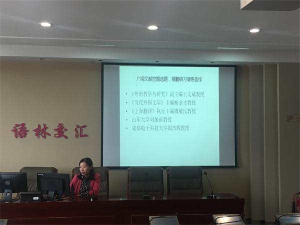 2018年10月24日下午,外国语学院副教授张艳、副教授韩荣分别就参加第二届全国医学语言与翻译学术研讨会暨国际医学人文交流论坛和学术期刊论文写作与发表研修班作了学术交流分享。