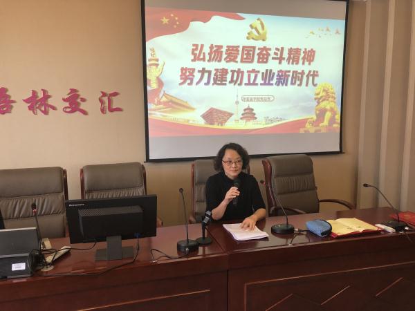 随后,尚瑜从爱国奋斗是新时代高扬的主旋律;爱国奋斗精神的现实意义;如何践行爱国奋斗精神;做爱国奋斗精神的模范践行者四个方面内容带领全体教职工进行集中学习。