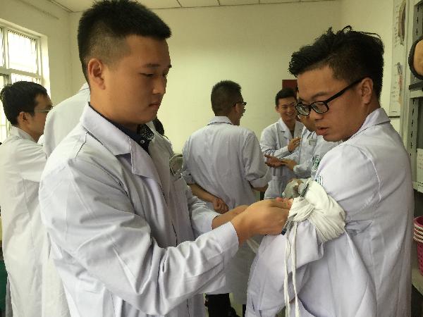 此次“三角巾包扎术”课程在轻松、有趣的氛围中完成。通过这种“翻转课堂”的教学模式,一对一地指出问题,进一步完善和改进学习效果,提高了大家的学习兴趣,也让大家在实践中掌握了新的技能。今后全科医学院将继续开展类似的培训,每次课程安排20人参加。以新形式、新方法提高大家的临床实践操作水平。(全科医学院 文/图 马淑云 张欣)