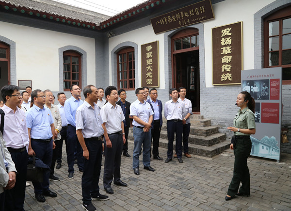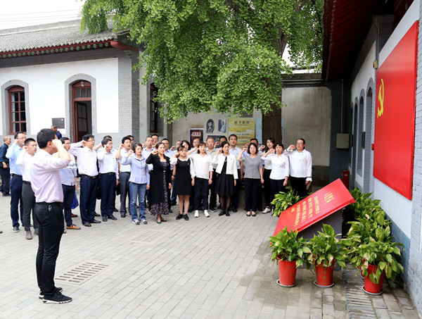附属宝鸡医院参观人员在八路军办事处党旗下重温入党誓词