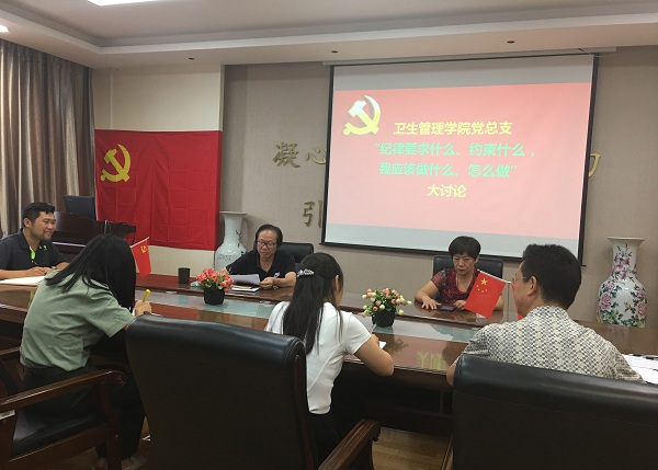专题讨论有议题有思考。党总支紧紧围绕“纪律要求什么、约束什么?我该做什么、怎么做?”为专题,开展集体的大讨论,引导党组织,党员干部真正把自己摆进去、把思想摆进去、把职责摆进去,切实做到严守纪律。(卫生管理学院 文/张卓 图/张卓)