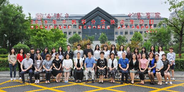 韩国师生在西安市中医医院学习交流并合影留念