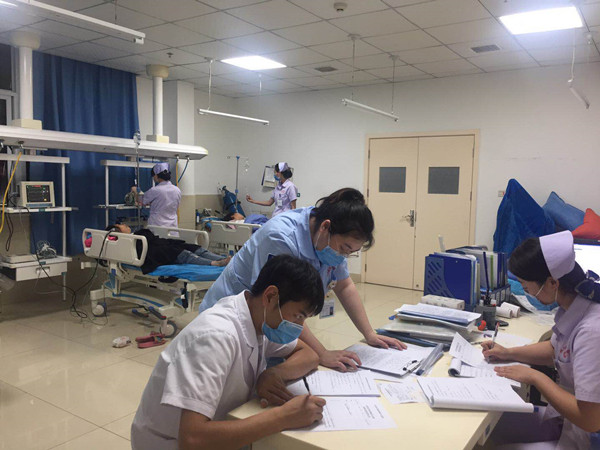 昨夜风雨交加,急诊科接来宗营镇杨家山村一组张女士等6名食物中毒患者。张女士因听别人提起有种植物(当地人称其为火麻)可以食用,她便将其与面粉混合加之调料油炸后食用。食用后三小时开始出现头晕、恶心、剧烈呕吐、意识模糊且伴有短阵的肢体麻木等症状。19时30分左右,6人被送到汉江医院急诊科。急诊科值班医生张雪红准确做出判断,立即启动突发事件应急预案,内科和儿科医生第一时间到达现场,院内二线医护人员3分钟内全部到岗,组织抢救;家住汉中的急诊科护士张甜、内二科主任王志贵等人,不顾外面的倾盆大雨,从市区开车或者打车火速赶来参与抢救。医护人员按照食物中毒的抢救流程,进行催吐、洗胃,建立静脉通道用药,抽血查血常规、予心电、血压、血氧检测及鼻导管吸氧……经过一个多小时的抢救,6名患者终于脱离了生命危险,4名成人转到住院,2名儿童门诊观察。