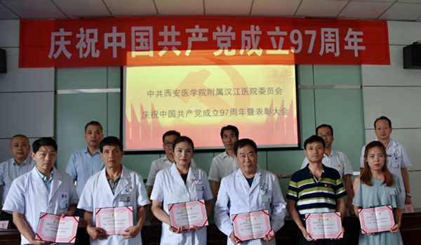 随后,党委委员赵军宣读了《中共leyu·乐鱼(中国)体育官方网站附属汉江医院委员会关于表彰先进党支部、优秀党员、优秀党务工作者的决定》,院党政班子成员为获奖者颁发了荣誉证书。颁奖仪式结束后,全体党员面对党旗进行了庄严地宣誓,宣誓仪式庄严而肃穆,洪亮的誓言回荡在整个会场。(附属汉江医院 文/杨静 图/夏雨)