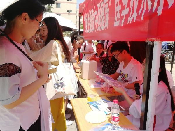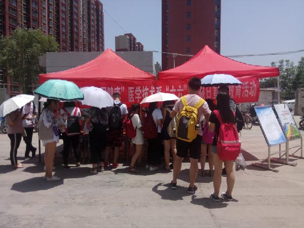 第三个环节是爱眼知识宣传,医学技术系眼视光专业教师在生活区学生食堂东侧针对控制近视的要点、饮食不当与视力下降、科学使用手机电脑等问题为大家答疑,同时发放爱眼知识宣传册300余份,开展爱眼知识有奖竞答活动。