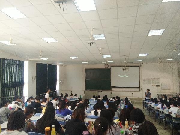 吴永东首先简述了自己的就业经历,接着向同学们介绍了行业的发展现状,最后用自己的亲身经历为同学们传授了求职面试的小技巧。吴永东以自身“学无止境、无所畏惧”的态度勉励同学们要勤奋好学保持自信、不断学习不断进步。