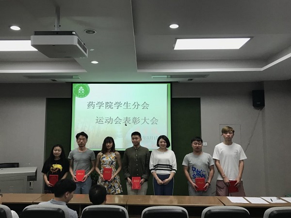 2018年5月17日,药学院团总支在药学院三楼报告厅召开2018田径运动会表彰大会,药学院党总支副书记吕忠田、药学院团总支书记杨娜、药学院学生分会主席和运动员代表参加了此次大会。